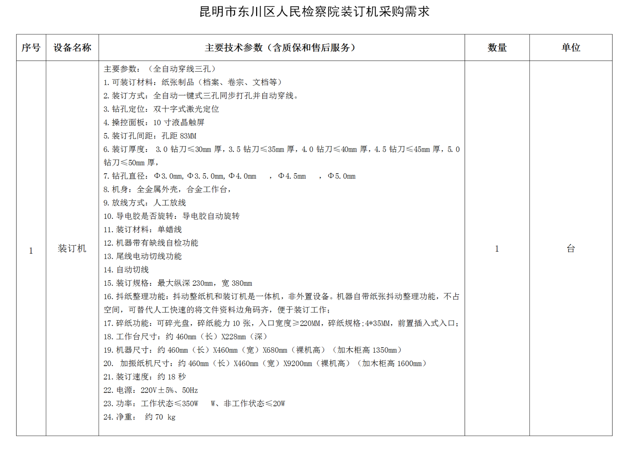 项目名称:昆明市东川区人民检察院装订机采购项目